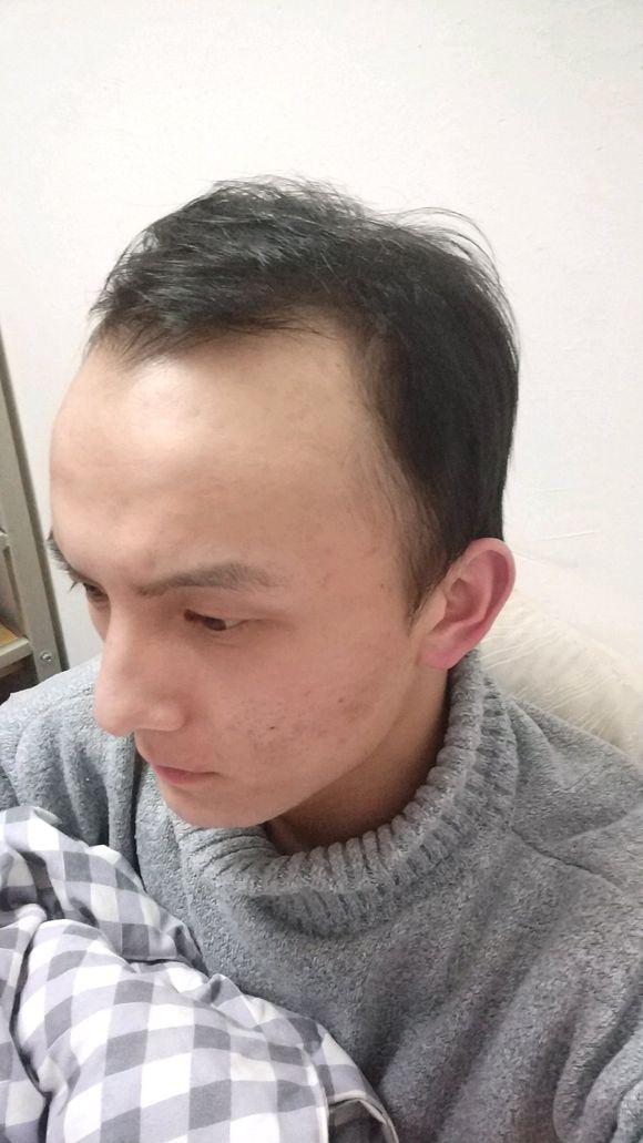 我本年虚岁已经25岁了。小时候头发很密,但在21岁左右的时候开始掉头发。如今发际线已经很高了,每次洗头都会掉许多的头发。有的掉下来的头发上面还有小白点的。最主要的是头顶显着,后边还能够。平时的时候压力很大,头