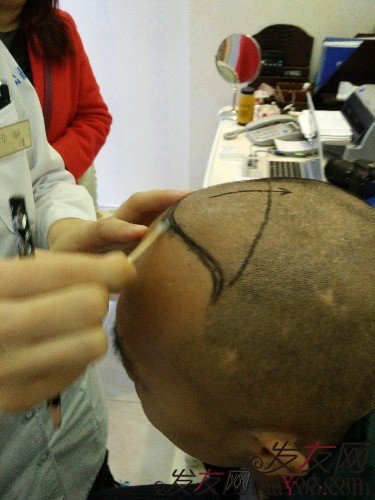 然后主管帮忙给画发际线,主管和杜经理都挺幽默、和气的,这样之前的紧张就会减少了很多!在经历了几分钟漫长而又短暂的等待之后,终于要进手术室了,临进之前还看见一个昨天刚刚手术的小伙有事要急着走,好像是个大学生,主管给他戴了一个手术帽子(蓝色那种),顺带关怀了几句就走了,那种感觉让人挺温馨的……