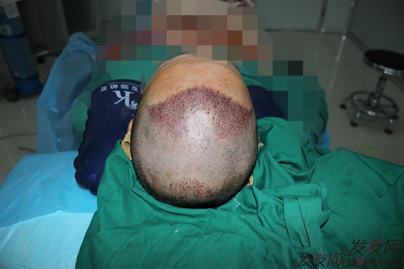 长这么大第一次进入手术室看到好多个手术医生心里特别担心害怕各种紧张,手术室里的医生招呼我上手术太麻醉师就给告诉我开始麻醉了,刚开始会有点疼麻醉师特别小心翼翼的给进行头皮麻醉不知不觉就感觉不到了疼痛,麻醉完之后医生告诉我开始取毛囊了在取毛囊的过程中手术师特别认真,在大概三个小时的过程中将要植的毛囊取出来,在接下来三个多近四个小时的时间里进行移植在移植过程中有分配毛囊的,有插孔的,有种植的,一个比一个仔细一个比一个认真动作特别老练自如。