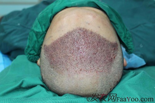 手术当天我很早就到了,因为那天安排了两台,我的第一个进,所以得办手续,差不多9点时候我便上手术了,从未上过台,心里既期待又紧张,七八个手术医师的专业严谨,清洁、消毒、麻醉、提取毛囊、都精心操控,给人的感觉很好,可以放心的将自己交给他们并任由摆布。最让我感动的不是这些严谨的专业流程而是医师们的人性化的服务。一些想到为了形象,这点痛苦是值得忍受的,渐渐的我百感交集的心终于平静下来,听着器械声,听着轻音乐,我竟然睡着了,接着有人轻轻拍醒我,说数毛囊,接着开始种植,听到医生他们手底下相当麻利,种植的医生有跟我讲术后怎样维护,叮嘱着我注意事项,认真,耐心。