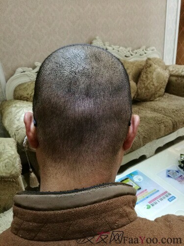 术后7天恢复得不错,取发区基本没有疼痛了,回家后因为本人比较听医生的话,严格遵循和落实术后注意的事项,饮食和作息规律,也没有长毛囊炎。进入脱落阶段也是心情比较低落的时候,北京总部的回访电话和主治医生也时不时的会打给我,给我鼓励和疏导。经过了几个月的努力和坚持,自己也改变了很多不良的生活习惯,每天也坚持用药,现在4个月了,看到头发慢慢的变好变密,我心情也比以前好了!在这里也想引用网上的一句话:你敷着最贵的面膜,却熬着最长的夜,皮肤会好吗?当然植发也一样!所以不要轻视了术后的保养和良好的作息哦!