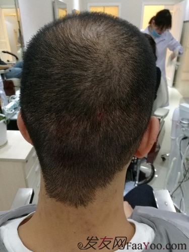 男生就选择剃光头了,估计男生多数都会选择直接剃头,这样方便,也利于恢复,然后就是设计发际线,吃了术前药,就去了手术室,心理还是有一点紧张,医生会让你放轻松;先是从后枕部取发,医生开始给头皮消毒打局部麻醉,而后就开始用仪器取头发了,打了麻药,其实头皮没一点感觉的。过程有点长,就是一直采用趴着的姿势有点不舒服;记得九点多开始的手术,加上种植的时间,完成差不多下午四点钟,除了头皮有点发紧没什么太大感觉;休息一下,吃了晚餐就去医生安排的地方休息了。