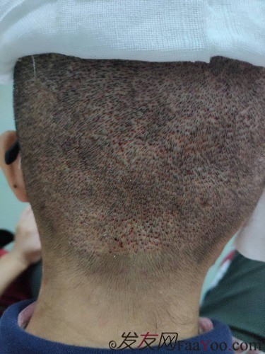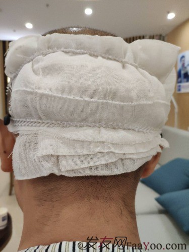 手术过程中,有好几个医生有各自的分工,医生都很亲切,会询问我痛不痛,和我聊天。打麻药会有一点痛,但一会头就变麻木了,取发和植发就没什么知觉了。三点下的手术台,身体状况还不错,医院准备的有便当,赶紧吃了一份。因为今天要换纱布,我选择在医院住一晚,免费食宿。晚上睡觉后枕取发处有点痛。吃了止痛药和助眠药很快就入睡了,今天起床完全没有疼痛感了,早上主任医生过来观察,说一切正常,希望头发生长的过程中也是一切正常。