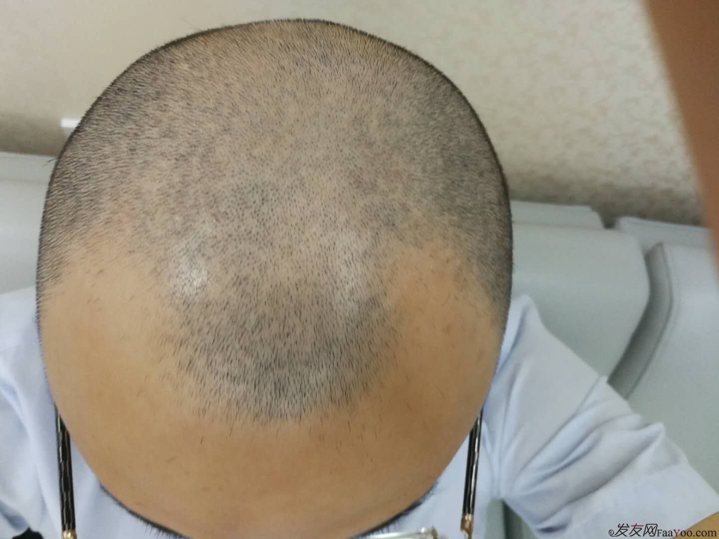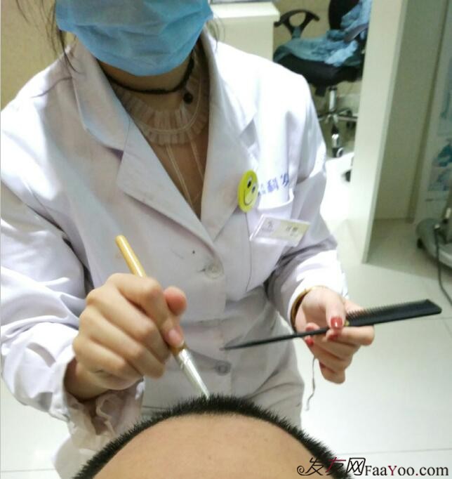 从开始的掉一点到后来就不敢梳头了,每次梳头发的时候都是一梳掉一大把。生姜、黑豆汤、各种食物抹的都用了,这样反复折腾4年多,不但没有好转,反而越来越严重基本要秃顶了,不带帽子基本上是不敢出门!清楚的记得在夏天很热的时候也要带帽子,结果是越捂越严重了,根本没法出门,后来公司安排去国外谈生意,在街上走的时候偶然看到一个植发机构,叫什么给忘了,反正记得名字还挺长的,后来翻阅他们的资料发现咱们国内竟然还开了一家。
