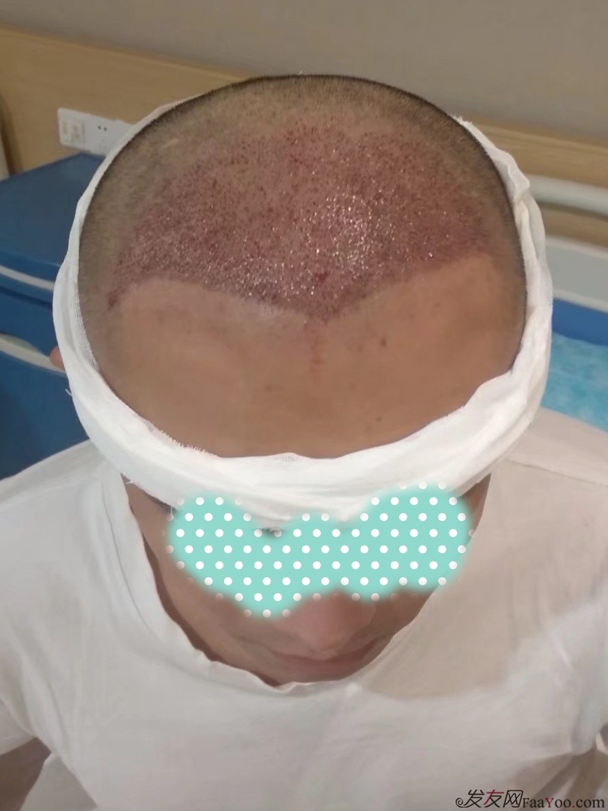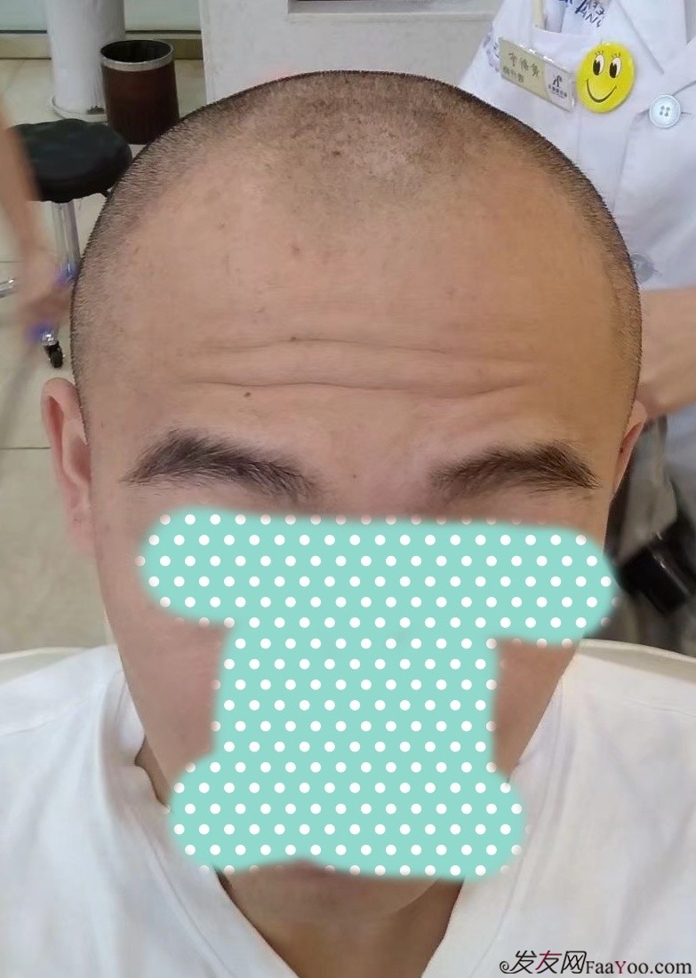 第二天来定下了手术时间,手术当天还是妈妈陪我来的,在妈妈面前紧张也得要装作不紧张的样子,免得她担心,所以硬着头皮就进了手术室。打麻药有点疼不过有医生一直在问我问题分散我的注意力倒是还可以接受,中间出来吃了饭休息了半小时左右又开始进行手术,下午我一直在睡觉的状态完全没有感觉,做完手术下午四点多,妈妈看到效果还是挺满意一直笑,这就有头发了,想想还挺简单的嘛!
