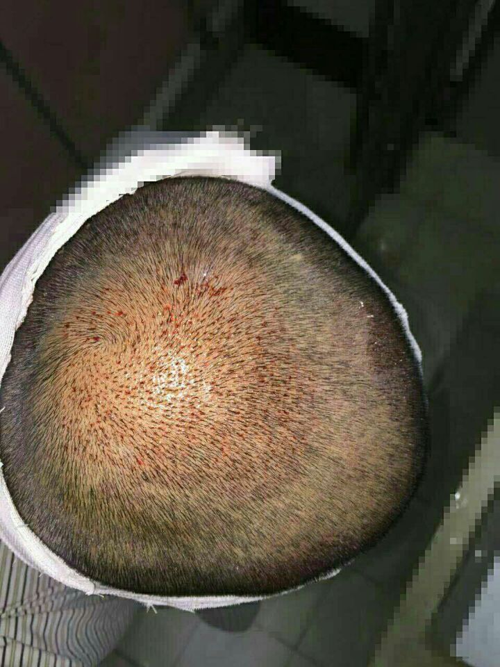 毕竟没办法,想想植发之后,过个一年半载头发就可以恢复了,紧张是因为有点点怕,毕竟在头上做手术还是第一次,之前就听说打麻药会痛的。真正到了自己做手术的时候,打麻药其实也没有想的那么痛,一般人可以忍受,做手术的时候还会一直放着歌,让你放松心情,麻醉效果到了,医生就开始会在你后枕部取发,真的没感觉,但是会在那边趴很长时间,很难受,但是没办法,受点罪以后才能有更好的明天,取完发之后,医生会把你的毛囊给自己看,我就大概看了下,我做的是2800单位,希望植发之后,我能恢复当往年那样的帅气。