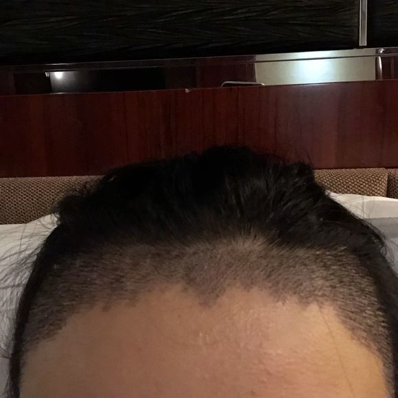 哈哈给大家说一下手术当天情况吧,手术当天我空腹过来丁医生先给我做了血液检测,检测正常之后就开始设计方案画种植区的那个线条,接着就签订协议,一切都那么顺利,可是到理发的时候我就特别紧张了,呵呵,毕竟是植发手术吗?平时扎针都怕疼,丁医生就一直在身边安慰我、给我鼓励,理完发之后就直接进手术室消毒,打麻药、取发、再打麻药、重塑毛孔、种植,将近4个小时,打麻药的时候的确是挺疼的,但是取头发和种的时候就不疼了,出来之后头有点晕,可能是出了很多血的原因吧,喝了几杯红糖水,后来丁医生帮我交代完注意事项之后我当天就回家了,晚上睡觉的时候不是很舒服,后脑勺压着比较疼,前3天平躺着休息脸稍微有点肿胀,丁医生说是麻药代谢的原因,终于等到了第7天过来清理血痂了,我终于解放了呦!今天有空更新一下术前术后的照片给大家分享一下哦,见证我头发生长的过程吧,期待自己美美的样子。